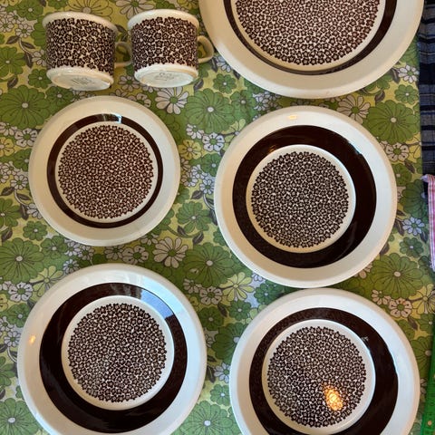 Två tallrikar 24 cm och en skål 19 cm från serien Anemon, designad av Marianne Westman för Rörstrand.