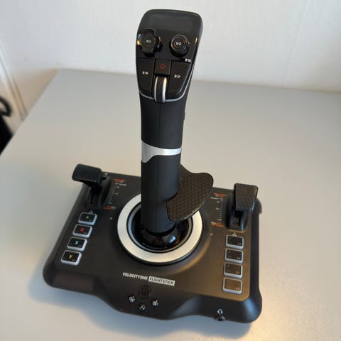 Thrustmaster joystick och gasreglage samt CH Products Flight Sim Yoke och Pro Pedals flygsimulatorset.