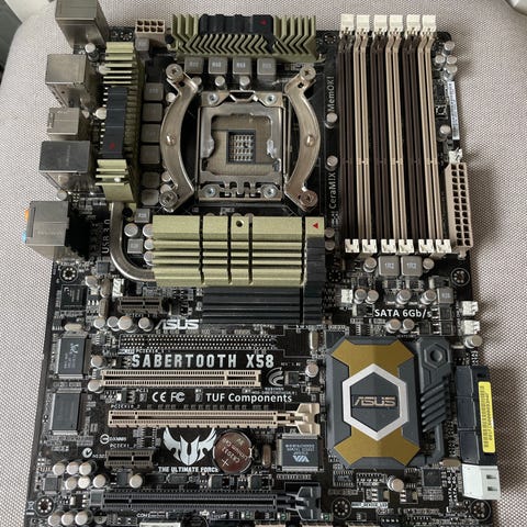 Moderkort avsett för serverbruk. Kortet har flera minnesplatser för DDR3 ECC-minnen, 64gb installerat.