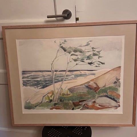 Inramad litografi landskapsmotiv Einar Rosén