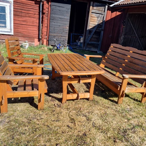 Trädgårdssoffa tvåsitsig med bord trä natur. Duosoffa.