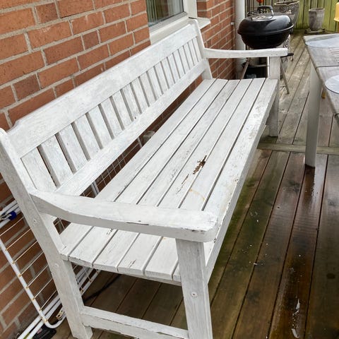 Nybyggd duosoffa i lärkträ med två separata sitsar och integrerat bord i mitten. Soffan är tillverkad i obehandlat, vackert lärkträ med ribbad rygg och sits samt breda armstöd. Konstruktionen är anpassad för utomhusbruk i trädgård, på altan eller uteplats. Dynor kan användas för ökad sittkomfort, som visas på en av bilderna. Dynor ingår ej.