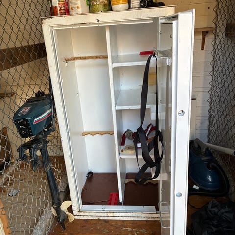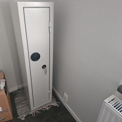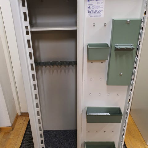 Rejält skåp för förvaring av jaktutrustning, gevär, värdesaker mm.