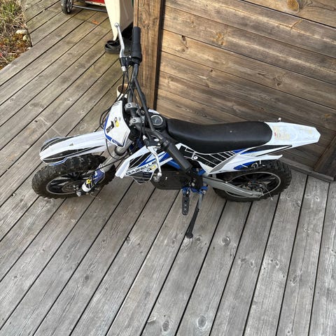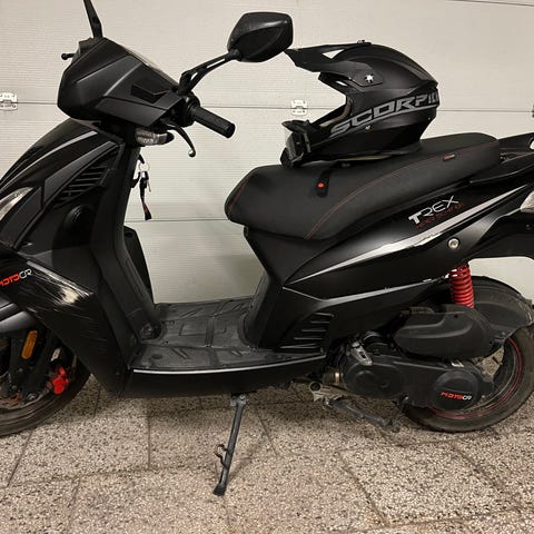 Rieju MRT 50 supermoto i vit och röd färgsättning. Moped med högt styre och supermotodäck anpassad för körning på väg. Sadel i svart utförande och plastkåpor med grafik. På bilderna syns även ett kedjelås med bygel samt ett överdrag/skydd som kan användas vid förvaring utomhus. Passar för vardagspendling eller fritidskörning på landsväg och i tätort. Pris går att diskuteras. Ställ gärna frågor vid intresse. Ungefär 95 mil.