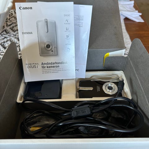 Canon Digital Ixus 95 IS kompaktkamera i silver. Kameran har 10,0 megapixlar och 3x optisk zoom enligt informationen på förpackningen. Bildstabilisering (IS) hjälper till att minska skakningsoskärpa vid fotografering. I paketet ingår kamera, batteriladdare, anslutningskablar, programvaru-cd samt bruksanvisning, enligt vad som syns på bilderna. Lämplig för vardagsfotografering, resor och enklare videoinspelning.