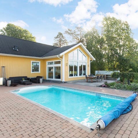 RIB-cover poolöverdrag i storlek 5x8m i silvergrå färg. Passar såklart även mindre pooler.