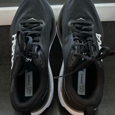 Hoka Bondi 8 lörarskor i storlek 38. Skorna är vita med turkosa detaljer invändigt och i yttersulan. Ovandel i meshmaterial för ventilation. Kraftig mellansula ger dämpning vid löpning. Yttersula med mönster för grepp på underlaget. Passar för löpning och annan träning utomhus eller inomhus.