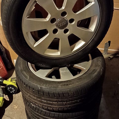 Lättmetallfälgar som suttit på Audi A3 med Michelin Energy saver i bra skick ca 5-6 mm kvar.