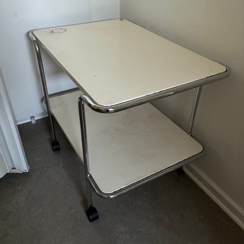 Det finns ett skrivbord till om ni vill ha. Bordsskivan har tyvärr fläckar.
