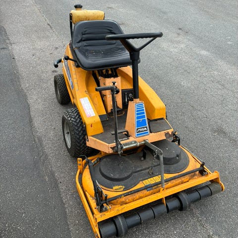 Klippdäcket är i okej skick, men på maskinen i övrigt förekommer en del rost och rostfläckar.
