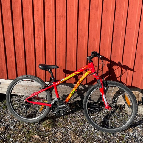 Specialized Riprock 24" barncykel. Åtta växlar, dämpad framgaffel, extra breda däck. Går fint i skogen. Stöd, ringklocka och reflexer fram och bak ingår.