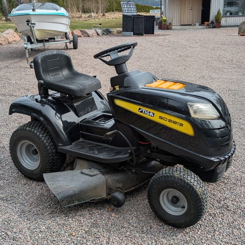 Partner åkgräsklippare i svart utförande.
