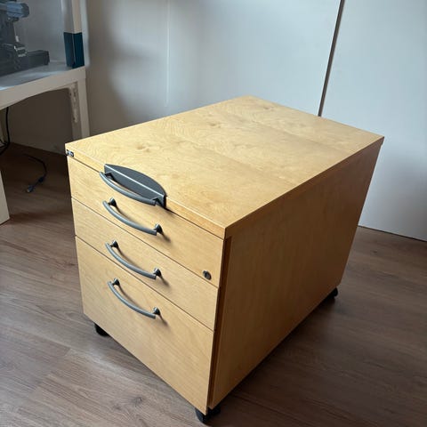 Skrivbordshurts i ok skick. Kosmetisk skada och nyckel saknas
