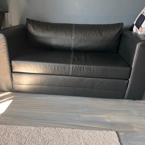 Soffan står på andra våningen och bärs ned av köparen pga min dåliga rygg