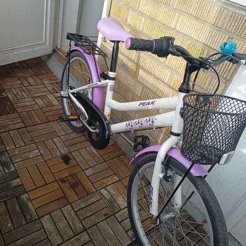 Cykel 20 tum, Peak Wombat med 3 växlar, fot- & handbroms, pakethållare, stödben och ringklocka. Fint använt skick bara att börja cykla.