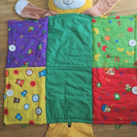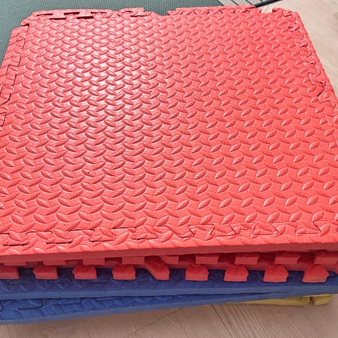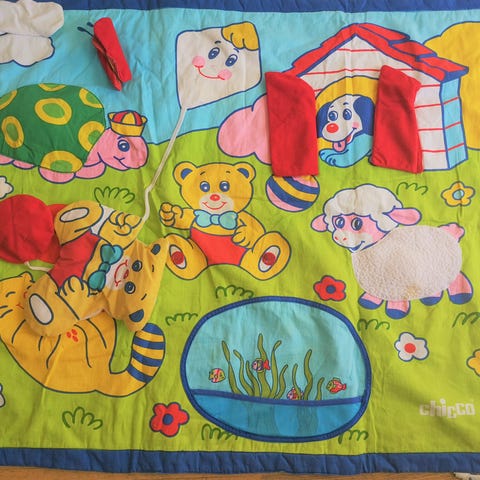 Lekmatta pusselmatta i flerfärgad design. Består av sammankopplingsbara skumplattor som kan läggas ihop till en stor matta. Ger en mjuk yta att leka på och kan användas inomhus på hårda golv i barnrum eller lekhörna.