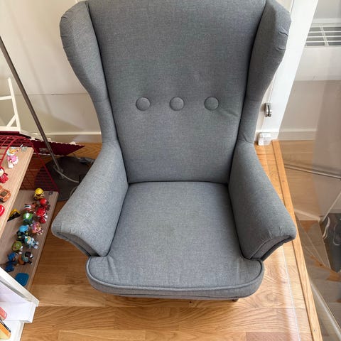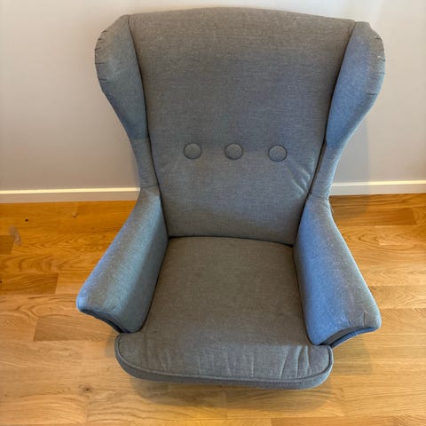 Hej, jag tror fåtöljen heter lömsk. Väldigt begagnat skick men har mycket mer att ge.