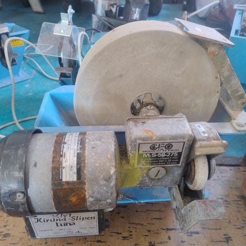 kiruna slipmaskin våtslip för verktygsslipning. Maskinen har en roterande slipsten och vattenbad för kontrollerad och skonsam slipning. Lämplig för slipning av exempelvis knivar, stämjärn och andra handverktyg i verkstad eller hobbybruk