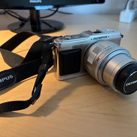 Olympus 14-42mm 3.5-5.6. perfekt vardagobjeltiv som öppnar upp när kameran startar. Har även installerat linsskydd som öppnar och stänger med kameran