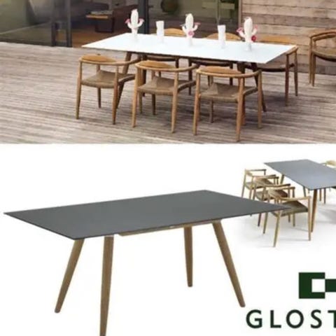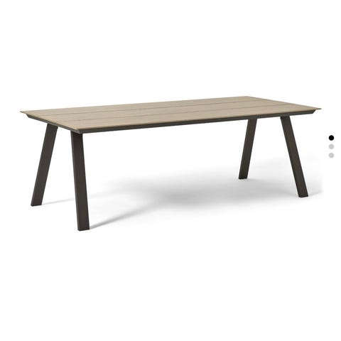 Svart utebord med antracitfärgad glasskiva och underrede i aluminium.