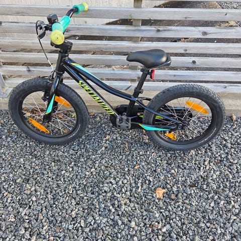 Specialized Riprock barncykel med 16" hjul. Kvaliteten av en stor cykel fast i litet format. Handbroms fram och fotbroms bak för säkra stopp. Stödhjul finns med också.