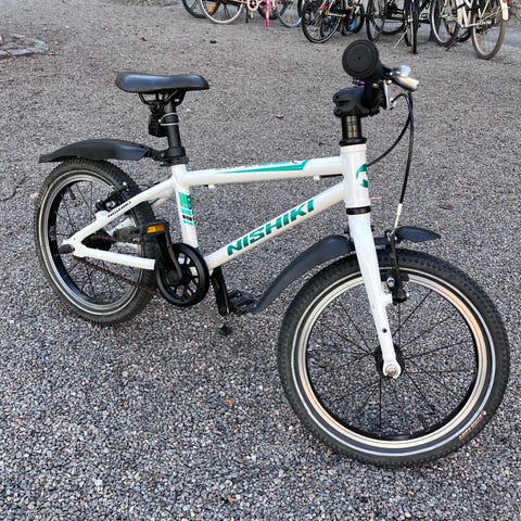 Handbroms både fram och bak, stöd, cykelkorg, ringklockor.