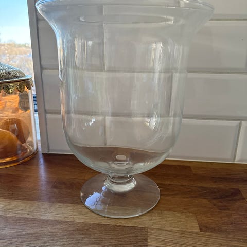 En ljusstake/lykta på gråmelerad fot. Glaskupa och gråmelerad ring upptill. Är HELT och lite i chabby chick stil. Höjd ca 27cm bottenplattan ca 12cm i diametern. Är använd men fortfarande fin och hel. Kan hämtas i Falun om så önskas