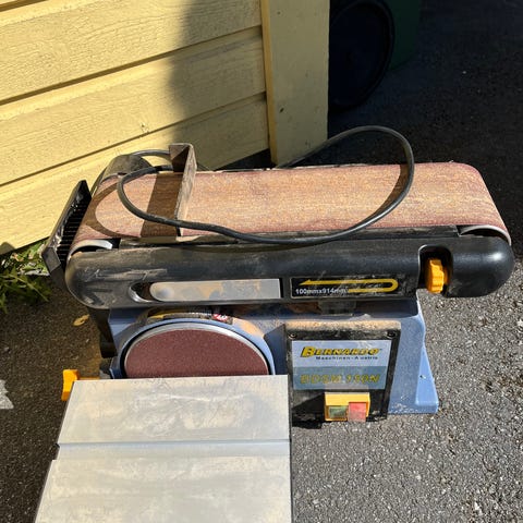 Stor bänkslipmaskin från 80-talet. Funkar hur bra som helst. Okänt märke.