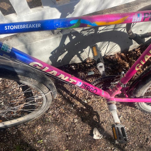 Vacker cykel levereras med en gratis telefonhållare och cykellås.