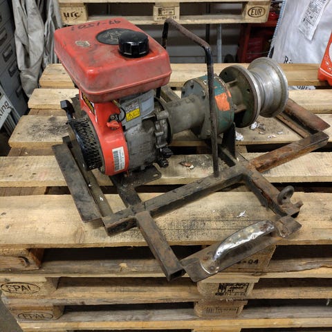 En bensindriven vattenpump av märket Läns-Man.
