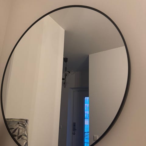 Säljer min stora spegel från IKEA-serien Lindbyn då den inte ryms i min nya lägenhet. Diametern är 110cm, spegeln är i gott skick på framsidan men har några repor på baksidan som synes på andra bilden. Hämtas i centrala Uppsala (Kåbo).