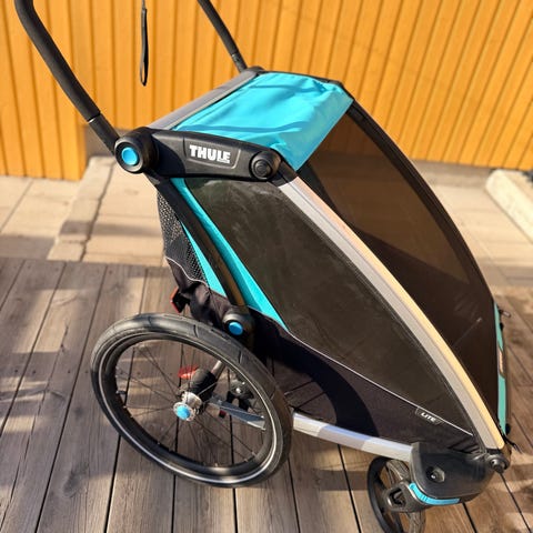 Cykelvagn från Thule för två barn (maxvikt 44 kg).