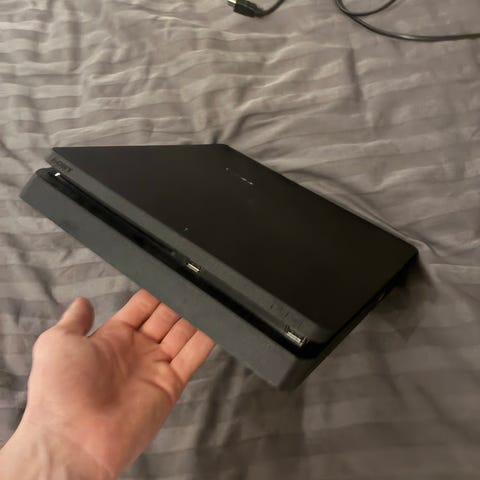 Sony PlayStation 4 Slim spelkonsol i svart färg. Konsolen levereras med två svarta DualShock 4-handkontroller. I annonsen ingår även sex PS4-spel: Ratchet & Clank, Destiny 2, Minecraft, Fifa 21, GTA 5 och Mortal Kombat 11 Ultimate båda på fysisk skiva i originalfodral. Passar för spel, film och annan underhållning via PlayStation 4-plattformen. Det ingår även 500Gb lagring.