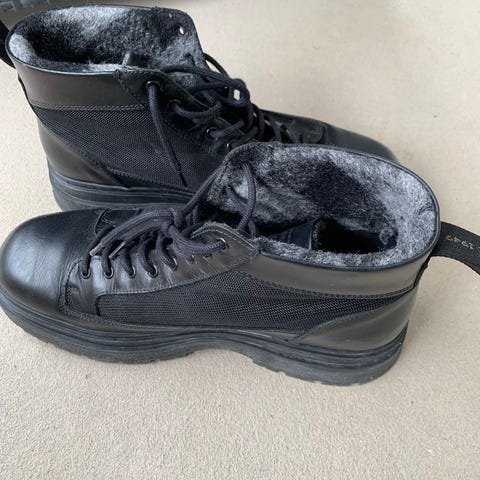 Vans sneakers i svart färg, storlek 42. Modellen är en snörad sneaker med högre skaft och platt sula. Ovandel i textil och/eller syntet med förstärkt hälparti och dragögla bak för enklare påtagning. Passar till vardagsbruk och fritid.