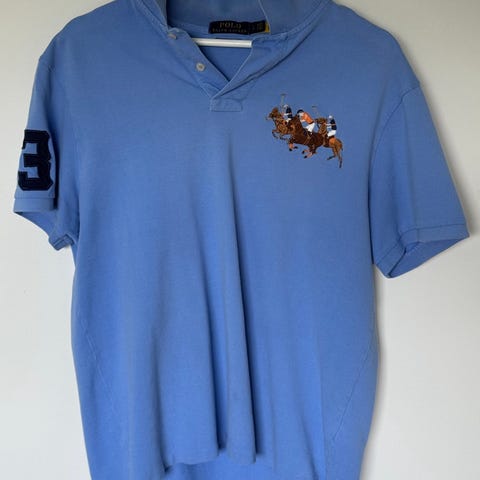 Polo Ralph Lauren t-shirt i mörkblått i ett frotté liknande material. Tröjan har korta ärmar och en rund halsringning. Den ikoniska polospelaren är broderad på bröstet i vitt. Endast använd 2 gånger. Nypris 1595:-. Tshirten är i storlek L.