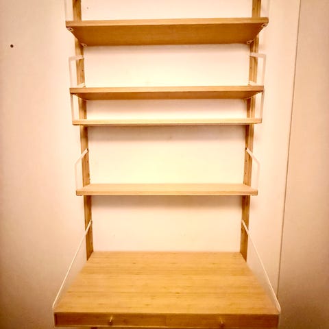 Man kan möblera hyllorna som man vill, och använda 2 eller 3 väggskenor.