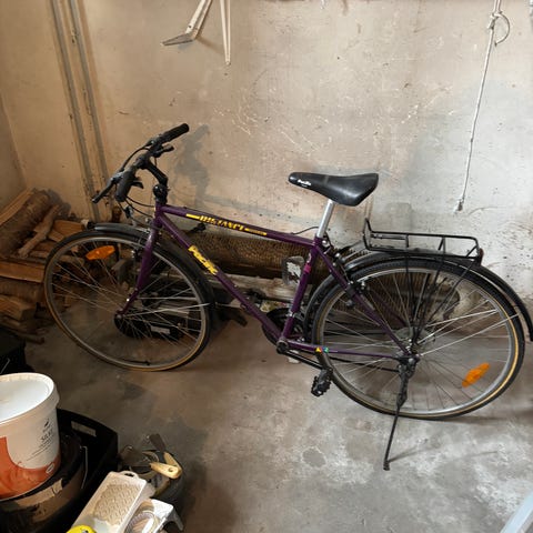 Pakethållare, forbroms, handbroms. Lite sliten men funkar att ta fram från A till B.
