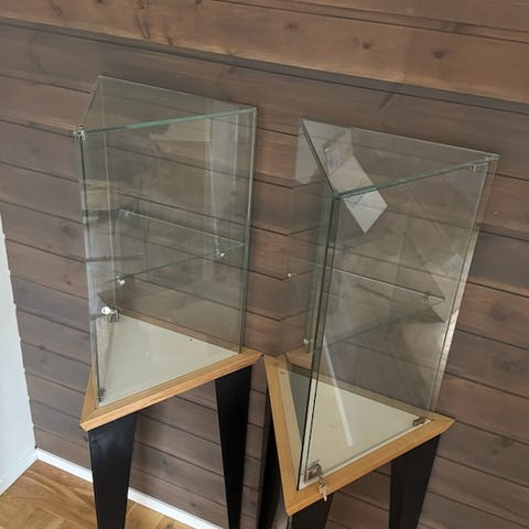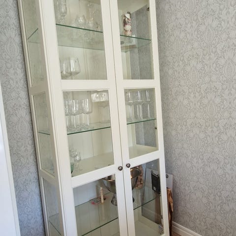 Massivt vitrinskåp,mått höjd 210 cm bredd 117 cm djup 40 cm. Säljes enskilt eller i par.