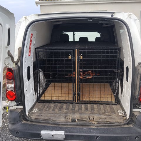 Säljer vår MIM krocktestade transportbur. Är storlek medium. Är en dubbelbur med justerbar mellanvägg. Finns tre nycklar. Använts i Volvo V50 och den nyare modelen av Ford Kuga.