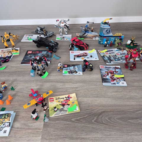 Dom set som har en grön lapp är kompletta och dom övriga saknar ett fåtal delar.