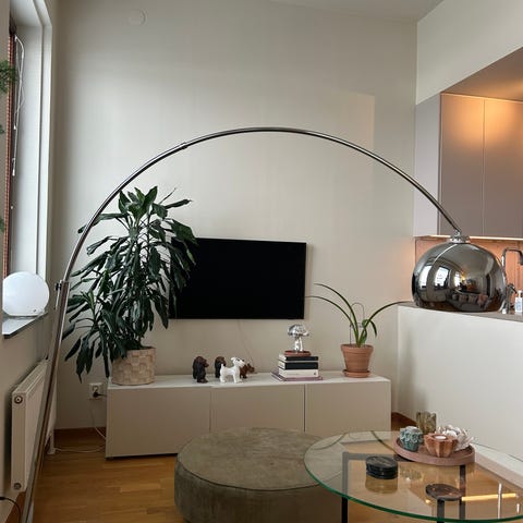 Säljer en fin och stor båglampa som vi haft över matbord. Fint att ha över soffbord med.