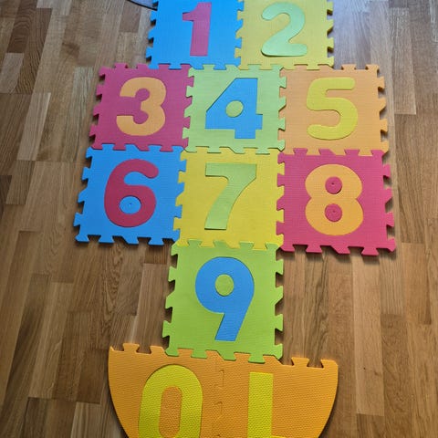 10 st pusselmattor i skum säljes. Varje platta är ca 65 x 65 cm.