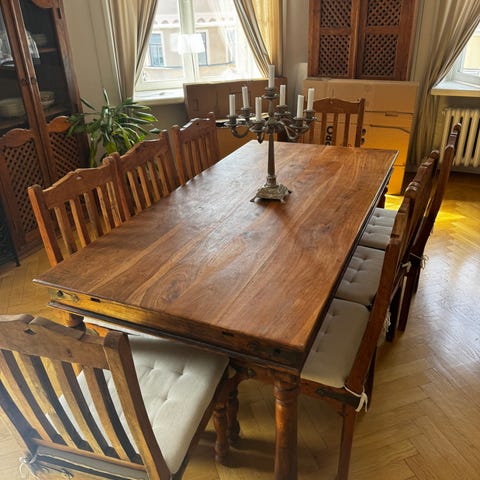 Matbord med stolar i massivt trä - elegant, perfekt för både vardag och fest