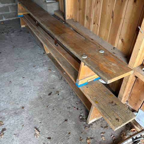 Mycket stabil arbetsbänk med hyllkonsol/galgstång. Mått 80x200 cm, bänkhöjd 70 cm. Endast hämtning.