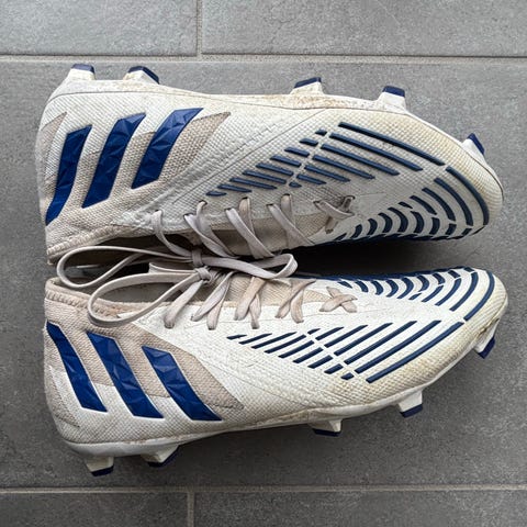 Adidas Copa pure fotbollsskor i vitt med blå detaljer storlek UK 7,5 Skorna har fasta dobbar anpassade för spel på naturgräs. Ovandel i syntetmaterial med snörning för justerbar passform.