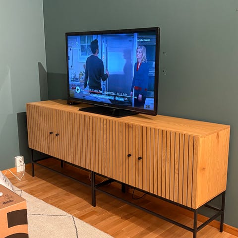 I’m moving away from Sweden and need to sell some of my furniture, including this TV cabinet. It was bought brand new for 2,145 SEK and is in great condition.