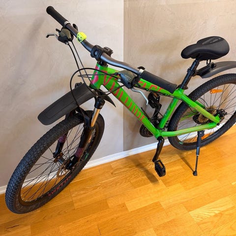 Sportig mountainbike Viva Trail gjord i lättvikt aluminium. Denna mountainbike är utrustad med stötdämpad framgaffel och terrängmönstrade däck på 26", vilket hjälper föraren på grova underlag. För stark och pålitlig nerbromsning har denna mountainbike skivbroms både på fram och på bakhjulet. Mountainbiken har också hela 21 olika växlar, så att man kan anpassa sin cykelfärd för olika situationer och distanser.