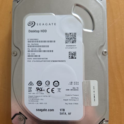En SATA disk köpt oktober 2018, tagen ur ”drift” idag efter att ha ersatts av SSDs.