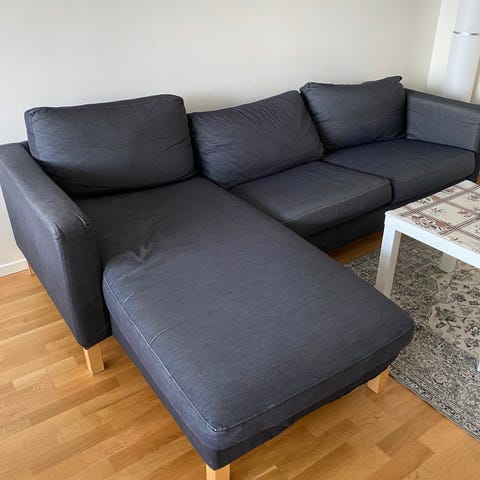 Soffan med schäslong bortskänkes. Finns i Solna. Snabb avhämtning prioriteras.
