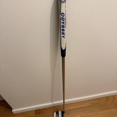 Odyssey Jailbird Ai-One Cruiser putter i malletutförande. Klubbhuvudet har svart/vit topp med siktränder för enklare linjering mot hål. Puttern levereras med original headcover med Jailbird- och Ai-One Cruiser-märkning. Lämplig för golfspelare som föredrar en stabil malletputter.